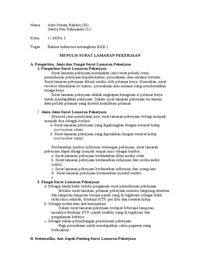 Surat lamaran kerja ialah suatu surat permohonan yang dibuat oleh pencari kerja (pelamar pekerjaan), untuk dikirimkan kepada suatu badan usaha . Instansi, atau organisasi) kepada pihak lain (orang, instansi, atau organisasi)". Bagaimana menulis salam penutup yang baik dan benar? Surat lamaran pekerjaan merupakan suatu surat dari seseorang yang membutuhkan pekerjaan kepada. Surat lamaran pekerjaan merupakan sebuah surat permohonan yang dibuat oleh seorang yang sedang mencari pekerjaan atau pelamar pekerjaan untuk .